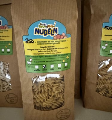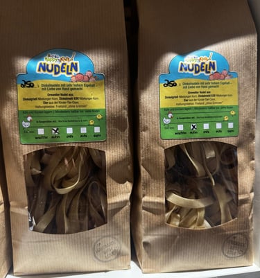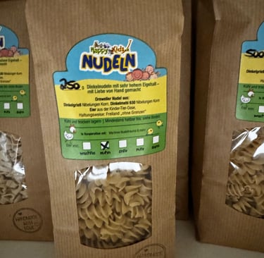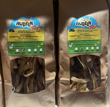 Unsere besonderen Nudelsorten, Herznudeln, Bauernhofnudeln, feiner Honig und saisonale Spezialitäten verbinden echten Genuss mit einem guten Zweck.